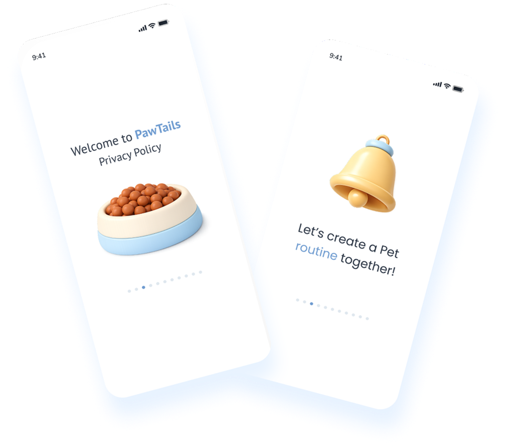 - Pet photo: if you choose one in onboarding or profile editing, image data may be stored locally and synced to cloud data for your pet profile.